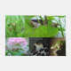 Sechs Fotografien eines "jungen grünen Baumfrosches" und eines kubanischen Baumfrosches, gedruckt auf einer Fußmatte.