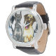 Uhr, Vintage Männeruhr mit schwarzem Lederarmband