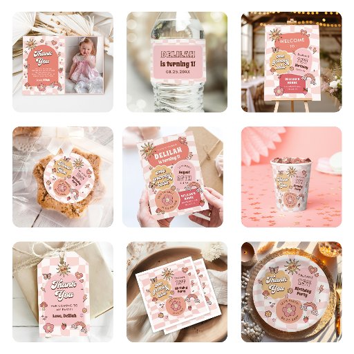 Vier mal Groovy Daisy 4. Geburtstags-Party Einladung