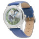 Kinderuhr aus Edelstahl mit blauem Lederarmband