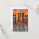 Die Karte zeigt ein buntes Bild von vier Pferden in einem Feld von Blume. Die Pferde sind in einem dynamischen Stil mit kühnen Farben und ausdrucksstarken Pinselstrichen bemalt. Das Gesamtbild des Gemäldes ist ein Gefühl von Schönheit und Ruhe. Die Kartenrückseite ist leer, sodass Sie Nachrichten schreiben oder gezeichnet werden können.