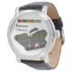Uhr, Vintage Männeruhr mit schwarzem Lederarmband