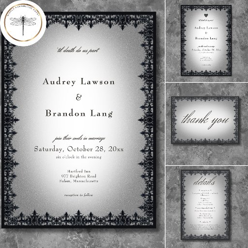 Genießen Sie Ihre gotische Hochzeit mit einer Viktorianisch inspirierten Hochzeitseinladung, die zeitlose Eleganz und Geheimnis ausstrahlt. Dieses atemberaubende Design wurde entworfen, um ein antikes Vintages Ambiente nachzuahmen. Die gotische Grenze im schwarzen Schmiedeeisen-Stil auf einem Vintagen, gealterten, weißen Hintergrund erinnert an den Charme vergangener Zeiten. Ein zartes filigranes Herz steht über der Formulierung "Til Death Do us Part". Lass deine Liebe mit einer Einladung, die so unvergesslich wie dein Tag ist. Erstellt von der einfachen Farmhouse Press. Für kundenspezifische Stücke oder um ein Produkt nicht in unserem Shop anzufordern, senden Sie bitte eine E-Mail an simplyfarmhousepress@gmail.com.