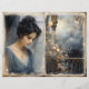 Viktorianische Lady Balcony Blue Junk Journal Page Mit verschiedenen Kunstwerken auf jeder Seite, Vintagen Stil, Damen und Blume in Mondlicht Blues. Für Ihre Junk Journaling- und Scrapbooking Projekte.