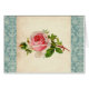 Eine schöne viktorianische Rosenillustration von einer nennenden Karte ist Set auf einem gealterten Hintergrund mit einer Aqua- oder Türkisdamastgrenze. Ein schönes Shabby Chic oder ein Vintager Entwurf für das weibliche, dennoch elegante, girly Mädchen!
