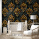 Klassische Tapeten in Schwarz und Gold für zeitlose Wanddekoration. Die Innendekoration ist sehr gelungen.