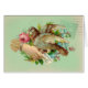 Ein schönes Vintages viktorianisches Valentinebild, das einen Vogel und eine Rose, gelegt über eine Vintage Postkarte und in einem leichten nebelhaften grünen © bös gebadet reizend kennzeichnet