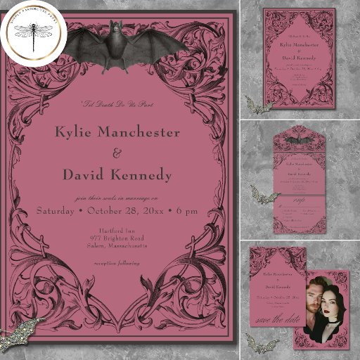 Victorian Bat Until Death Black & Wine WeddingDesignt von Kathe Santillo