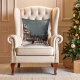 Das Kissen zeigt eine schneebedeckte Mondlichtszene, während die Gäste mit Pferd und Schlitten zum Weihnachtsfest im Viktorianischen Herrenhaus ankommen.