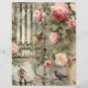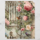 Ein bezauberndes, Viktorianisches Bücherbuch, das eine ruhige Gartenlandschaft mit blühenden Rose und Vögeln auf faszinierenden Eisentoren präsentiert, die ein Gefühl der Ruhe und Schönheit der Natur ausstrahlen.