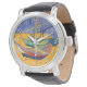 Uhr, Vintage Männeruhr mit schwarzem Lederarmband