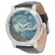Uhr, Vintage Männeruhr mit schwarzem Lederarmband