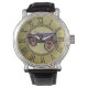 Uhr, Vintage Männeruhr mit schwarzem Lederarmband