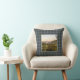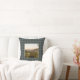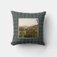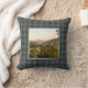 Kissen mit Vintagem Foto-Lithographie von Balmoral Castle aus dem Jahre 1895 fotografiert das große Anwesen in Royal Deeside, Aberdeenshire, Schottland. Digital gereinigt, verbessert und künstlerisch gerendert, um Stift und Tinte mit Aquarellen zu ähneln. Gerahmt und mit dem Royal Deeside Tartan unterlegt, einem traditionellen schottischen karierten Muster in Blau- und Grüntönen mit lila und Lavendel-Highlights.