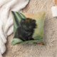 Kissen mit einem lieblichen schwarzen Kätzchen! Das grüne mit Augen Kätzchen sitzt auf einer Decke mit rosa Blume. Ein wunderschönes Geschenk für Katzenliebhaber und Viktorianische Kunstliebhaber!