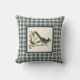 Digital gereinigtes und Vintages naturgeschichtliches Bild eines blauen Jay, gerahmt mit rustikalen kariert in türkisfarbenen, marineblau und creme mit grauen und moosgrünen Highlights. Das Kissen ist so gestaltet, dass es Platz für ein quadratisches Kissen bietet; es ist auch ein passendes kariertes, rechteckiges Lendenwirbelkissen erhältlich.