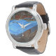 Uhr, Vintage Männeruhr mit schwarzem Lederarmband