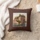 Kissen mit Vintagem Foto-Lithographie der Burg Caerlaverock in Schottland von 1895 fotografiert die Ruinen eines mittelalterlichen Burggrafs aus rotem Sandstein mit Efeu an den Wänden und einem Graben mit Holzbrücke. Digital gereinigt, verbessert und künstlerisch gerendert, um Stift und Tinte mit Aquarellen zu ähneln. Gerahmt und gestützt mit dem Clan Maxwell verwitterten Tartan, einem traditionellen schottischen karierten Muster in goldbraunen und roten Tönen, mit dunkelbraunen Highlights.