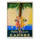 Besondere Vintage europäische Reisewerbung - Strand, Dorf, Menschen, Palmen, blaues Meer und Himmelsbild