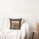 Kissen mit Vintagem Foto-Lithographie von Carrick Castle in Schottland aus dem Jahr 1895 fotografiert die Efeu bedeckten Ruinen eines mittelalterlichen Rotsandsteinturms mit Bergen im Hintergrund und einem See mit Booten im Vordergrund. Digital gereinigt, verbessert und künstlerisch gerendert, um Stift und Tinte mit Aquarellen zu ähneln. Gerahmt und mit dem Clan Bruce Tartan unterlegt, einem traditionellen schottischen karierten Muster in Rot und Grün mit goldfarbenen und weißen Highlights.