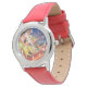 Uhr, Kinderuhr aus Edelstahl mit rosa Lederarmband