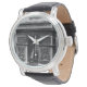 Uhr, Vintage Männeruhr mit schwarzem Lederarmband