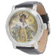 Uhr, Vintage Männeruhr mit schwarzem Lederarmband
