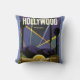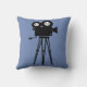 Dekoratives Accent Kissen mit Vintager Hollywood-Werbung auf der Vorderseite und alte Filmkamera auf der Rückseite.
