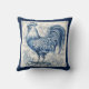 Das wunderschöne Kissen ist mit einem zentrierten, blau-weiß-toilen Hahn-Design mit dunklem Marineband ausgestattet. Eine schöne Ergänzung zur französischen Country-Dekoration.