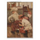 Vintage Grafik durch Clara M. Burd stellt eine niedliche aber komische Szene in einem Zuhause dar, in dem ein kleines Mädchen bemüht ist, herauf ein Loch auf der Rückseite der Hosen eines kleinen Jungen zu nähen, während er sie trägt. Er steht wartete geduldig, um zu erlöschen und das Spiel und hält einen Ball unter seinem Arm. Sie hat einen nähenden Korb auf dem Boden und ihre Mütze hängt an einem Stuhl. Der amerikanische Künstler, Clara M. Burd (1873-1933) war in New York und in studierter Kunst in New York City und später in Paris geboren. Sie ist für ihre Illustrationen für die Bücher der Kinder am bekanntesten, aber sie auch illustriert für Titelseite, entworfenes beflecktes Glas und Wandgemälde für Kirchen und die Porträts und die Szenen der gemalte Kinder von den historischen Zeiträumen. Diese Karte ist leeres Innere für Ihre eigene Mitteilung.