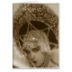 Vintages Showgirl aus dem frühen 20. Jahrhundert. Sie got sich leicht nach unten, wahrscheinlich wegen des riesigen und verzierten "Hutes", auf dem sie sitzt. Sie kann sie leicht als Rockette in Atlantic City sehen
