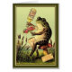 Dieses ist eine Vintage Anzeige für E.W. Hoyt u. Co. von Lowell, Massachusetts, der Verkäufer von Hoyts deutschem Parfüm. Die Anzeige kennzeichnet einen Frosch, der auf einem Toadstool unter etwas Cattails auf den Banken von einem See sitzt. Er spitzt eine Flasche Hoyts des deutschen Parfümhochs in der Luft, während er den Inhalt über einem Blumenstrauß der Blumen besprüht, um ihren Geruch zu erhöhen. Der verkaufte Cologne kam nicht wirklich aus Deutschland oder gestellt in Deutschland, aber wurde gegeben diesen Namen von E.W. Hoyt her, im Jahre 1870 gerade, zum eines unterscheidenden Namens für das Produkt anzugeben. Hoyt verkaufte seine Produkte in seinem Apothekergeschäft in Lowell, MA und auch über Handelsreisender, die von Speicher zu den Speicher reisten, der Hoyts Cologne verkauft. Die ersten Formen der Werbung und der Dürfenkunden den Cologne probieren waren durch die Geschäftskarten weg geben, die mit dem Cologne gerochen wurden und indem sie Phiolen des Cologne verkauften, um Gönner zu verursachen, eine volle Flasche schließlich zu kaufen. Diese Karte ist leeres Innere für Ihre eigene Mitteilung.