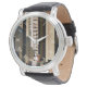 Uhr, Vintage Männeruhr mit schwarzem Lederarmband