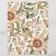 Vintages botanisches Design mit detaillierten beigen und grünen Blumen auf weißem Hintergrund.