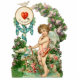 Weiße Kuppel mit Pfeilen unter Blumenbogen mit Vögeln auf Fotoskulptur.