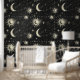 Vintage Black Chalkboard Night Sky Stars & Moons Tapete