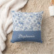 Elevate your style with this gorgeous blue toile floral toss pillow, personalized just for you! Featuring a timeless blue and white toile-style botanical pattern that evokes classic elegance, this design is as beautiful as it is functional. The rich blue panel is customized with a graceful script, making it a perfect gift or a lovely treat for yourself. Created by Simply Farmhouse Press.