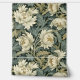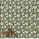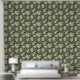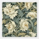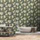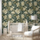 Einfache und elegante Vintage Tapete mit Blumenmotiven, die Blume in Creme und Gold und Salbeigrün auf dunkelgrünem Hintergrund darstellen.