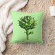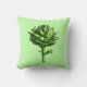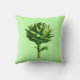 Kopfkissen in Vintager botanischer Darstellung einer Artischocke, digital verstärkt und farbig, auf einem hellgrün leuchtenden Hintergrund