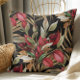 Vintage botanische Rose und Palmenblätter, schwarz Kissen