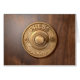 Eine klassische, Vintage Messingtür mit der Wortpresse auf der Holzoberfläche