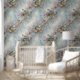 Vintage Bücher und Bluebirds Tapete
