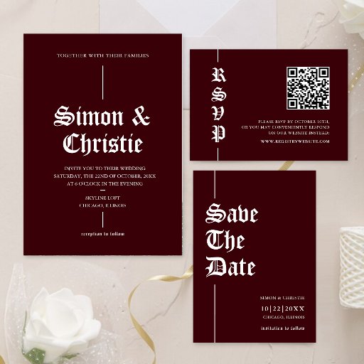 Introduce your celebration with warmth and sophistication through the Vintage Burgundy Photo QR Code Wedding Invitation, a design that blends rich romantic tones with modern convenience. The deep burgundy color palette evokes timeless elegance and pairs beautifully with classic typography, creating a refined backdrop for your favorite engagement photo. By featuring your own picture, this wedding invitation becomes more than an announcement, it becomes a personal reflection of your journey together. The thoughtfully integrated QR code adds a contemporary touch, allowing guests to instantly access your wedding website, RSVP page, venue directions, or event details with a simple scan. Perfect for fall weddings, evening ceremonies, rustic venues, or formal celebrations, this customizable photo wedding invitation balances vintage charm with practical functionality. Designed to stand out on the Zazzle Marketplace, it offers couples a stylish way to combine meaningful storytelling, bold burgundy aesthetics, and seamless digital access in one beautifully crafted piece of wedding stationery.