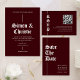 Vintage Burgundy Photo QR Code Wedding Einladung