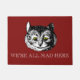 Eine lustige Fußmatte für Katzenliebhaber und Fans von den der Buch Alices Abenteuern im Märchenland durch Lewis Carroll. Unterhalb einer Vintagen Illustration des grinsenden Cheshire-Katzencharakters ist das katzenartige berühmte exzentrischzitat, ", das wir alle hier" in der weißen Beschriftung wütend sind. Das Vorlagenzeichnen war in Schwarzweiss durch Künstler John Tenniel. Ich habe einen Schlag des Gelbs den verrückten Katzenaugen hinzugefügt. Sie können die dunkelrote Hintergrundfarbe und -zitat zum Anzug mit dem besonders anfertigen Knopf ändern. Die Türmatte würde ein großes Geschenk für ein neues Zuhause oder einen Housewarming sein, die für Freunde und Familie vorhanden sind.