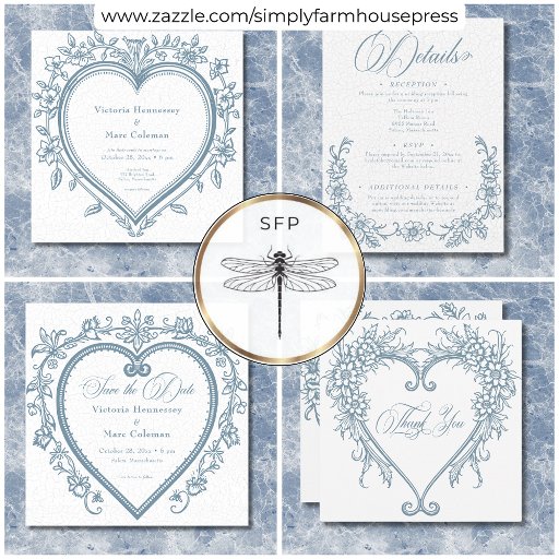Erleben Sie zeitlose Romantik mit unserer Vintag inspiriert Hochzeit speichern Sie die Dattelkarte. Dieses elegante, quadratische Design besticht durch einen weißen Hintergrund, der einen klassischen Viktorianischen antiken Charme ausstrahlt. In der Mitte befindet sich eine atemberaubende dustig blaue Chinoiserie, in der Sie Ihre Hochzeitsdetails in wunderschön Vintager Typografie finden. Der Rücken zeigt die ersten Initialen des Paares, die sich in einem passenden Blumenherz verstrickt haben, und schafft so ein zusammenhängendes und unvergessliches Design. Ideal für Paare, die alte Eleganz mit einer modernen Drehung Liebe. Erstellt von der einfachen Farmhouse Press.