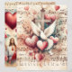 Doppelseitiges Scrapbook mit St. Valentinstag Herz- und Blume mit religiösen Symbolen auf Vintager Notenblätter zum Ausschneiden und Collagen, um Ihnen bei der Papierherstellung zu helfen. Perfekt für alle Arten von Papierkrafträdern von der Scrapbooking bis hin zur Junk Journaling.