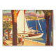 Besondere Vintage europäische Reisewerbung - Strand, Dorf, Menschen, Palmen, blaues Meer und Himmelsbild