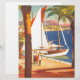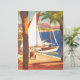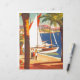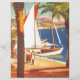 Besondere Vintage europäische Reisewerbung - Strand, Dorf, Menschen, Palmen, blaues Meer und Himmelsbild