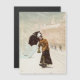 Vintage Dame im Schneesturm Magnetkarte